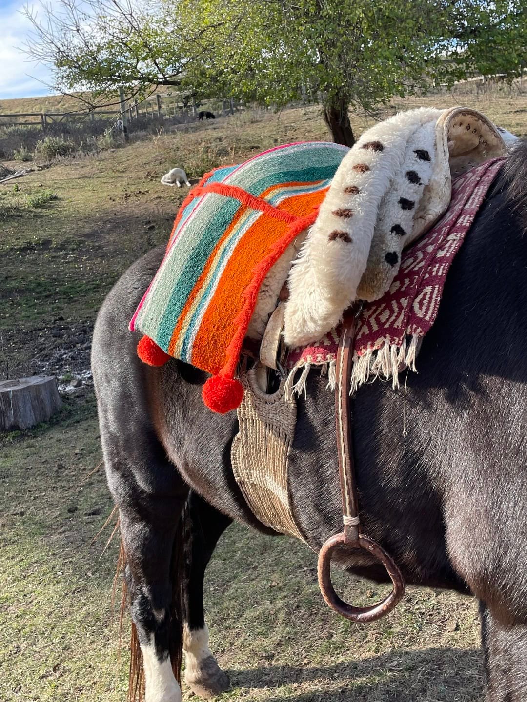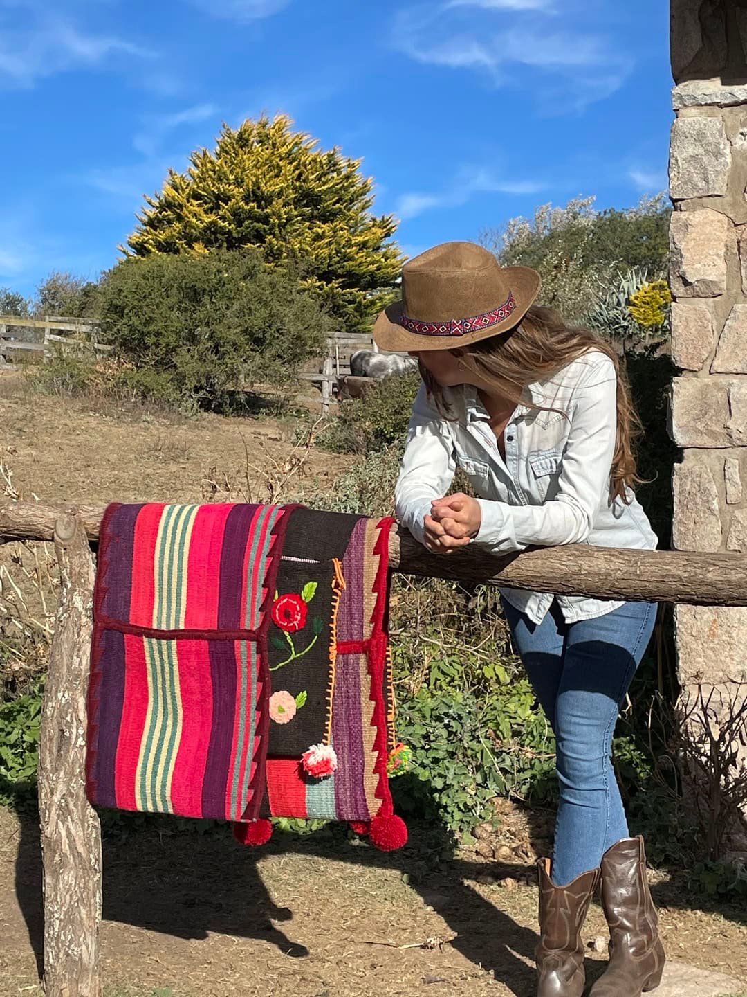 Alforjas de lana de oveja hechas en telar. Muy resistentes y amplias para llevar tus cosas cuando salis de cabalgata.